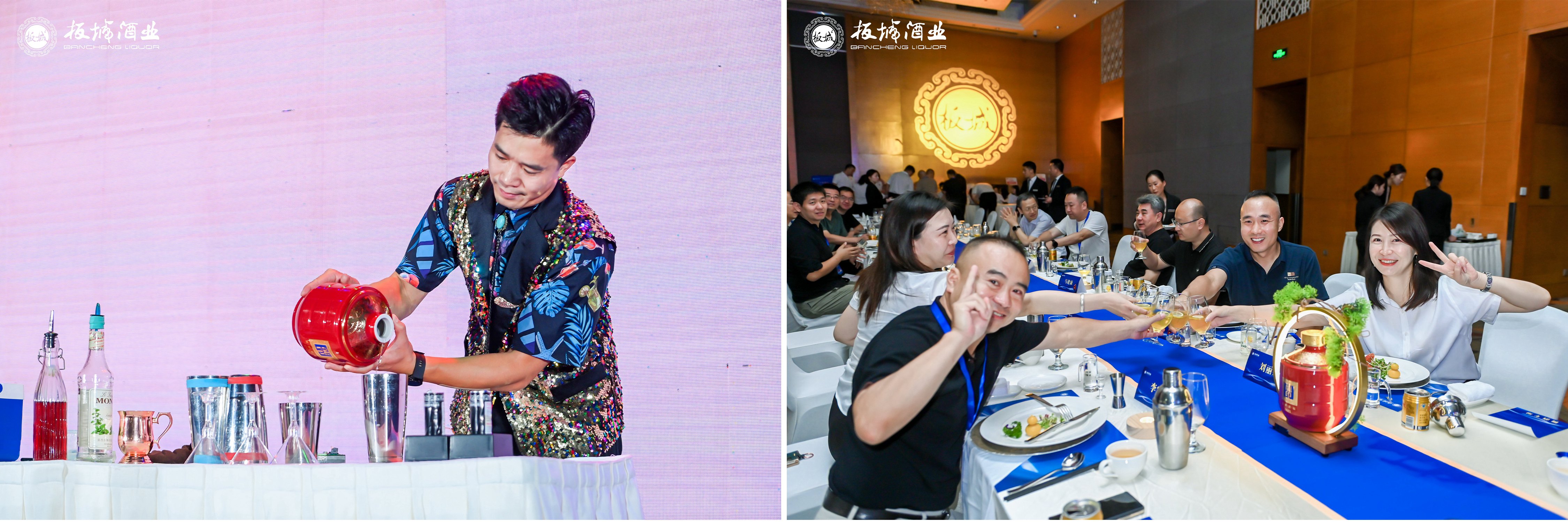 嘉賓們用龍印盛世封壇酒為基酒,親手調(diào)制專(zhuān)屬特飲。“shake it!”在主持人的帶動(dòng)下,一杯杯金黃色的“招財(cái)”特調(diào)誕生,朋友圈素材直接穩(wěn)了!