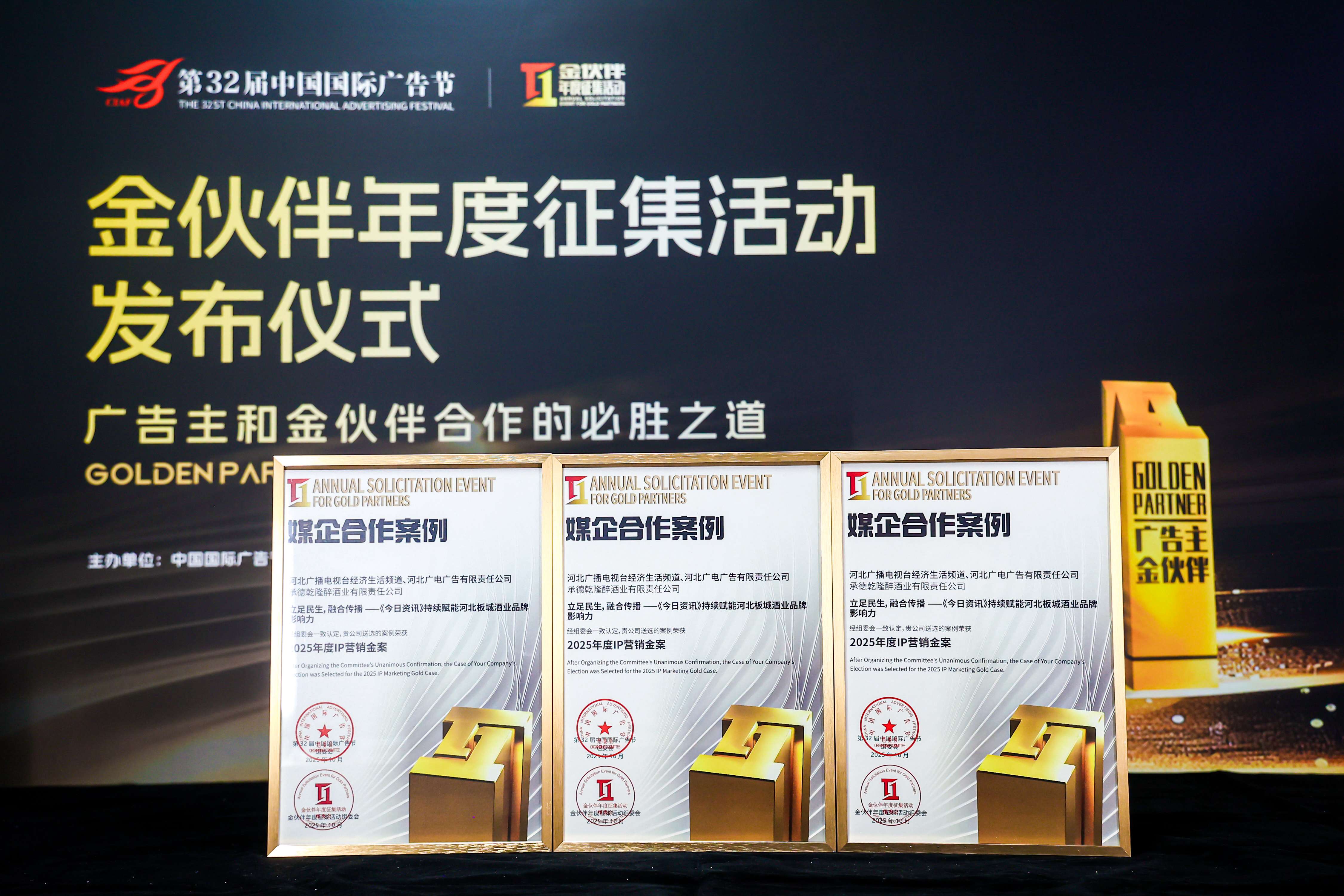 同時(shí),板城酒業(yè)與河北衛(wèi)視合作的“一城一韻,龍印鑒風(fēng)華2025承德酒文化節(jié)暨龍印秋藏大典推介會(huì)”案例榮獲2025年度活動(dòng)營銷金案。